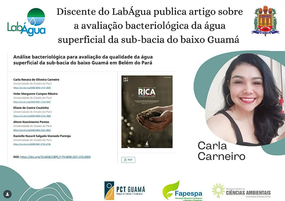 A doutoranda Carla Carneiro (PPGCA/UEPA) publicou o artigo “Análise bacteriológica para avaliação da qualidade da água superficial da sub-bacia do baixo Guamá em Belém do Pará”.